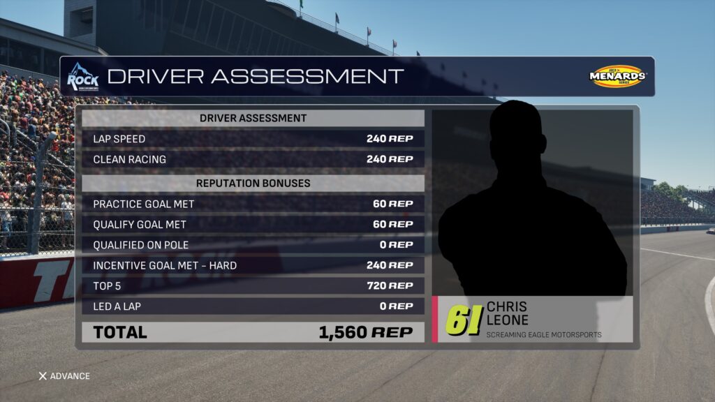 NASCAR 25 Career Mode: Reputation Points